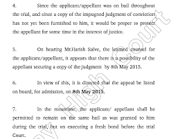 இந்த வழக்கில் இன்று 06.05.2015 புதன்கிழமை தீர்ப்பு கூறபட்டது. இன்று காலை 11.05 மணிக்கு வக்கீலுடன் சல்மான் சலீம்கான் கோர்ட்டுக்கு வந்தார். அவரது குடும்பத்தினரும் கோர்ட்டுக்கு வந்திருந்தினர்.