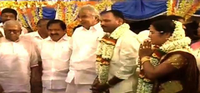 கேரள பெண் அமைச்சர் பி.கே.ஜெயலட்சுமிக்கும், விவசாயி சி.ஏ.அனில்குமாருக்கும் திருமணம்! கேரள முதல் மந்திரி உம்மன் சாண்டி, எதிர்க்கட்சி தலைவர் வி.எஸ்.அச்சுதானந்தன் ஆகியோர் நேரில் வாழ்த்து!