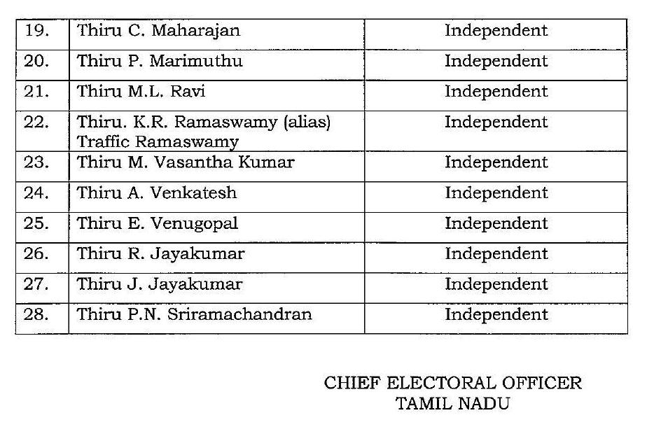 சென்னை, ஆர்.கே.நகர் தொகுதி இறுதி வேட்பாளர் பட்டியல்!