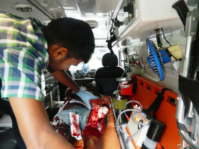 பின்னால் அமர்ந்து வந்த ஹரிபிரசாத்தின் கால் தடுப்பு சுவற்றில் மோதியதால் கால் துண்டானது. இவர் சிகிச்சைக்காக 108 ஆம்புலன்ஸ் மூலம் சேலம் அரசு மருத்துவமனைக்கு அனுப்பி வைக்கப்பட்டார்.