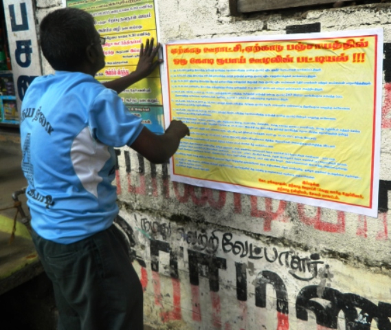 போஸ்டர் ஒட்டும் வார்டு கவுன்சிலர் ரங்கநாதன்.