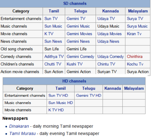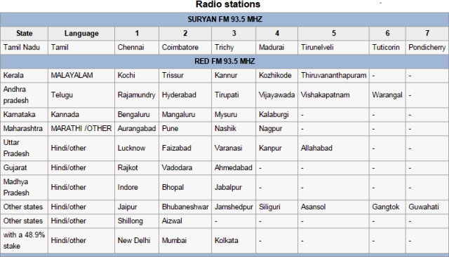 சன் குழுமம் 33 டி.வி. சேனல்கள், நாளிதழ்கள், பருவக்கால இதழ்கள் மற்றும் எப்.எம். ரேடியோ க்களை நடத்தி வருகிறது.