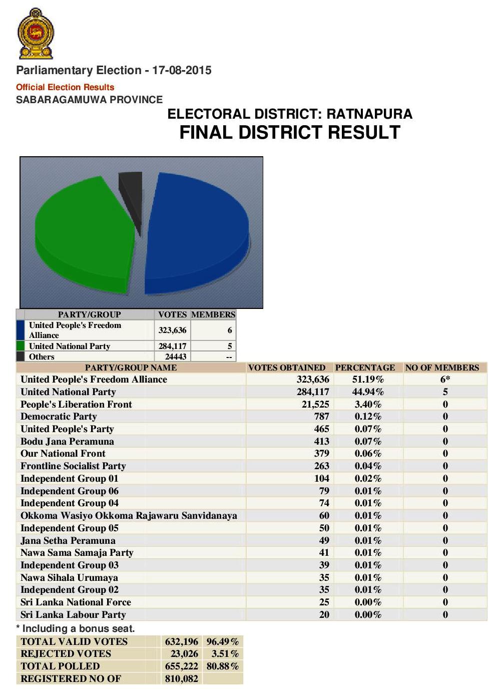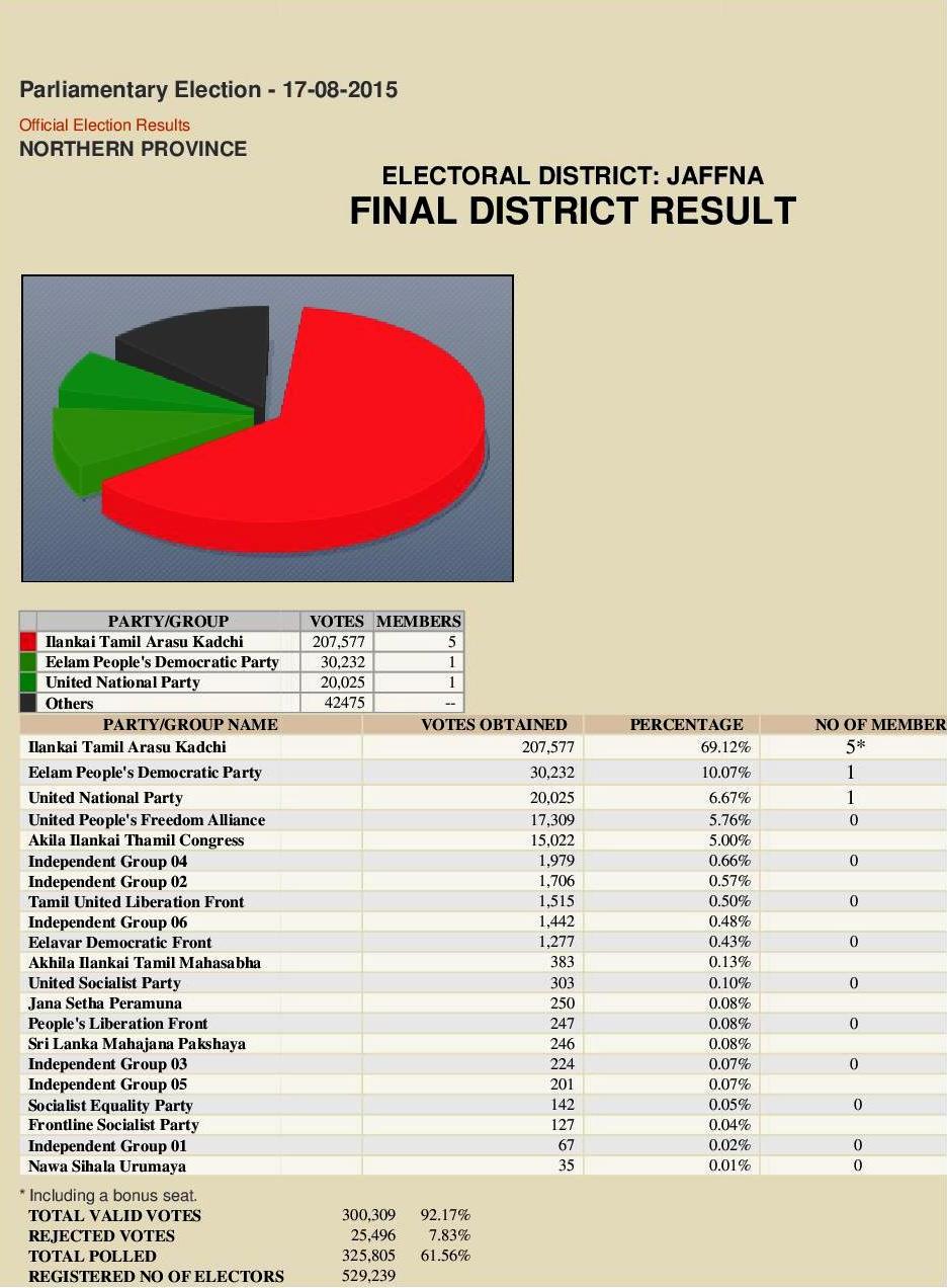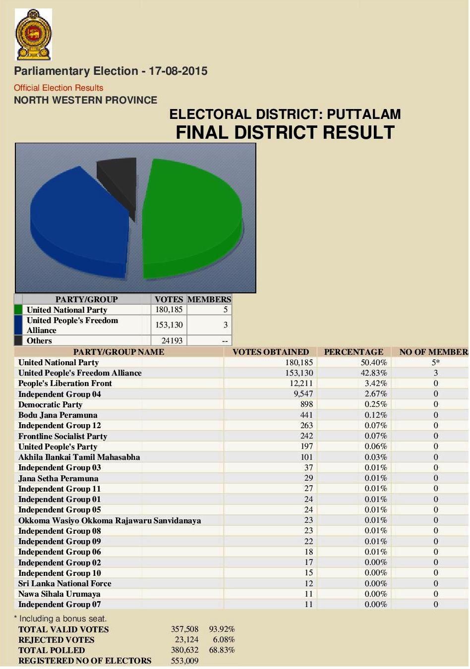 இலங்கை நாடாளுமன்ற அதிகாரப்பூர்வ தேர்தல் முடிவுகள்: