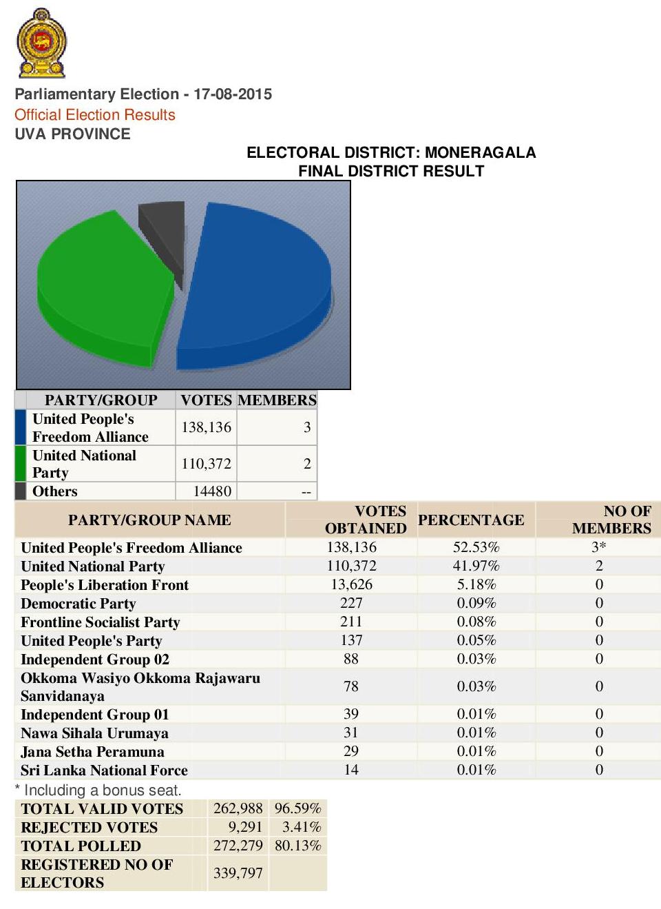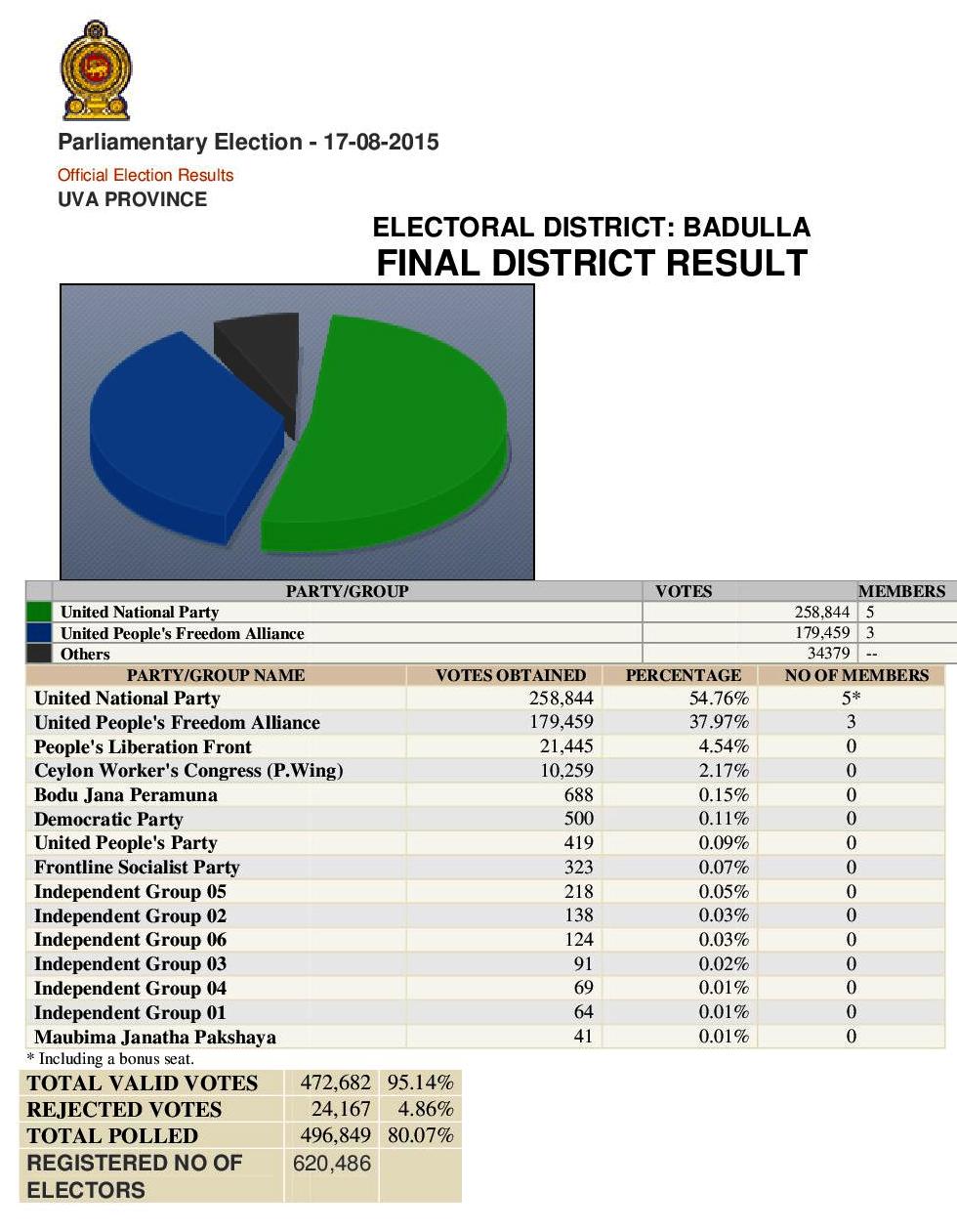 Parliamentary Election – 17-08-2015