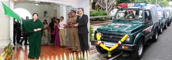 அதன்படி, சென்னை பெருநகர காவல் துறையினரின் ரோந்துப் பணிக்கு 8 கோடியே 55 லட்சம் ரூபாய் செலவில் வாங்கப்பட்ட 135 புதிய மாருதி ஜிப்சி வாகனங்களை முதலமைச்சர் ஜெ.ஜெயலலிதா, இன்று தலைமைச் செயலகத்தில் கொடியசைத்து துவக்கி வைத்தார்.