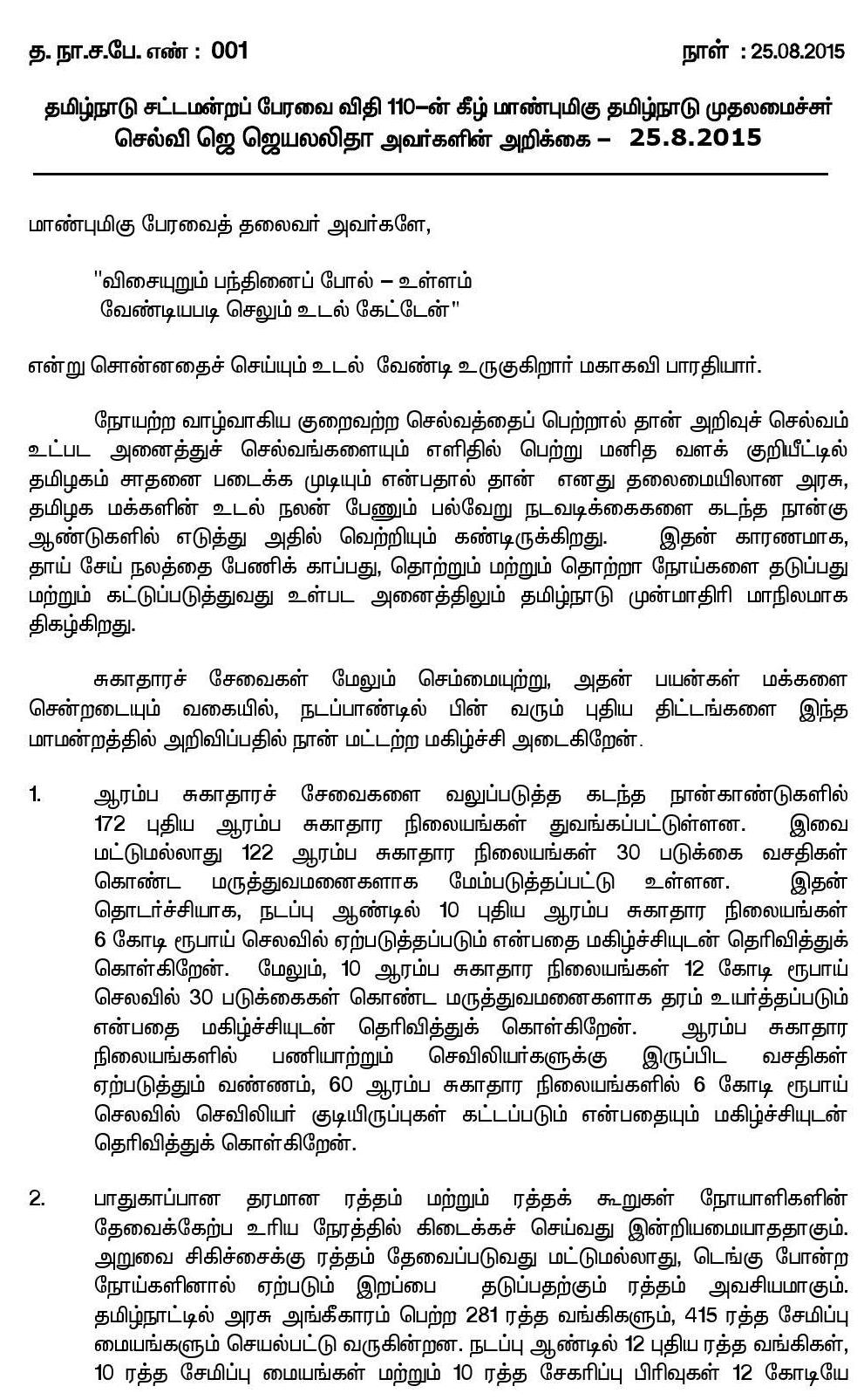 Home|News|இலவசமாக உடல் பரிசோதனை செய்து கொள்ள “அம்மா ஆரோக்கியத் திட்டம்”: தமிழக முதலமைச்சர் ஜெ.ஜெயலலிதா அறிவிப்பு! -கே.பி.சுகுமார்.