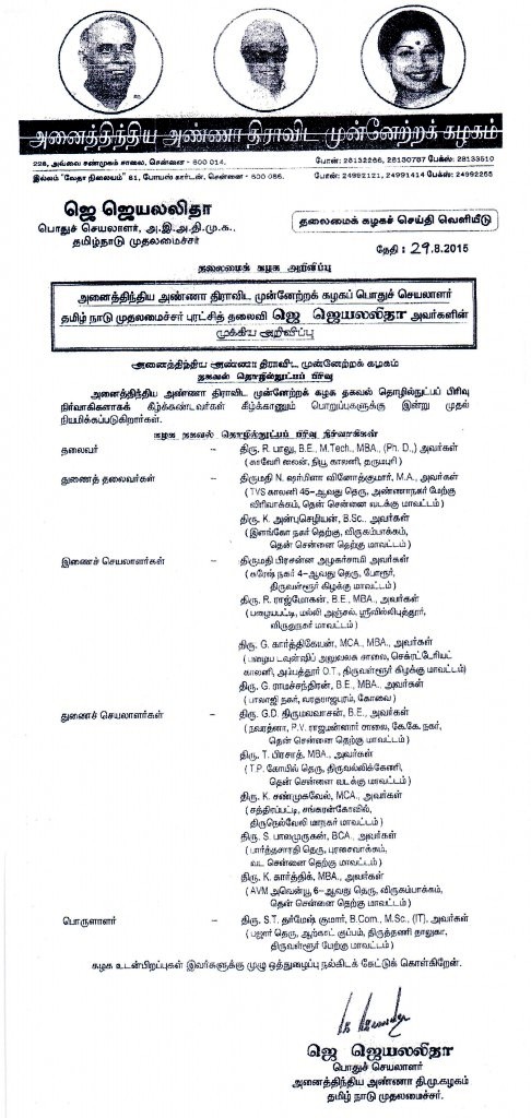 Home|News|அ.தி.மு.க. தகவல் தொழில் நுட்பப் பிரிவு நிர்வாகிகள் நியமனம்: அ.தி.மு.க. பொதுச் செயலாளர் ஜெ.ஜெயலலிதா அறிவிப்பு! -கே.பி.சுகுமார்.