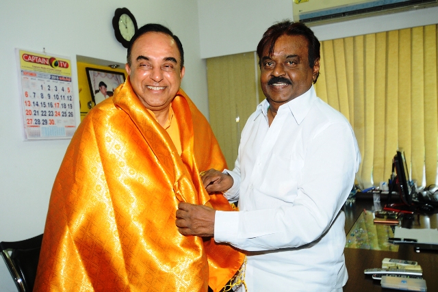 இன்று (05.09.2015) காலை 11 மணியளவில், தேமுதிக தலைவர் விஜயகாந்தும், சுப்பிரமணியசாமியும் சென்னை கோயம்பேட்டிலுள்ள தேமுதிக தலைமை அலுவலகத்தில் சந்தித்து இருப்பது ஊடகங்களில் பரபரப்பாக பேசப்பட்டாலும். இச்சந்திப்பு தேமுதிக தொண்டர்கள் மத்தியில் கோபத்தையும், பெரும் அதிருப்தியையும் ஏற்படுத்தியுள்ளது.