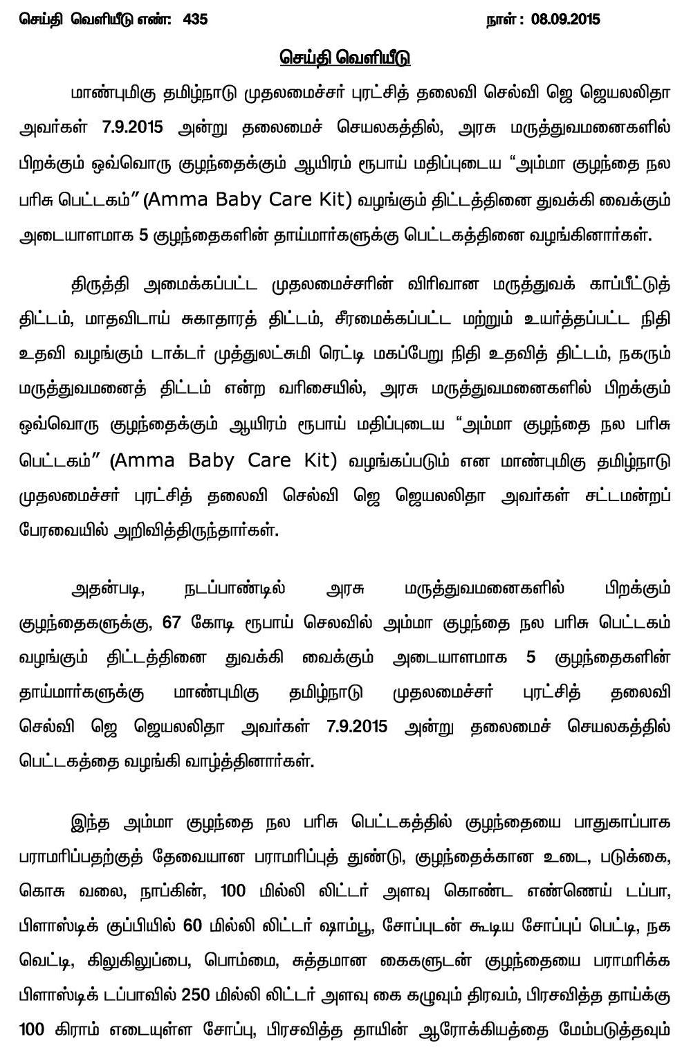 Home|News|“அம்மா குழந்தை நல பரிசு பெட்டகம்” தமிழக முதலமைச்சர் ஜெ.ஜெயலலிதா துவக்கி வைத்தார்! -ஆர்.அருண்கேசவன்.