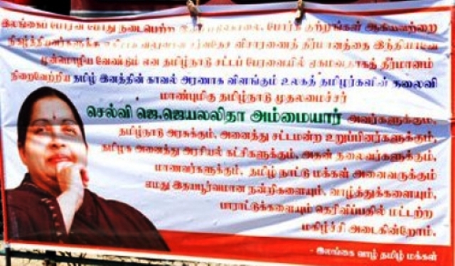 தமிழக முதலமைச்சர் ஜெ.ஜெயலலிதாவை பாராட்டி, இலங்கை யாழ்ப்பாணதில் பிளக்ஸ் பேனர்!