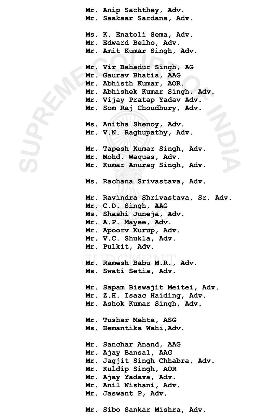 இந்த வழக்கில் தாக்கல் செய்யப்பட்ட மனுக்கள் தொடர்பாக மத்திய அரசுக்கும் அனைத்து மாநில அரசுகளும் அந்தந்த அரசுகளின் வக்கீல்கள் பதிவிறக்கம் செய்து பதிலை தயாரிக்க வசதியாக உச்ச நீதிமன்ற வரலாற்றிலேயே முதன்முறையாக பிரதான மனுவை உச்ச நீதிமன்ற இணையத்தில் பதிவேற்றவேண்டும் என்று உத்தரவு பிறப்பிக்கப்பட்டது.