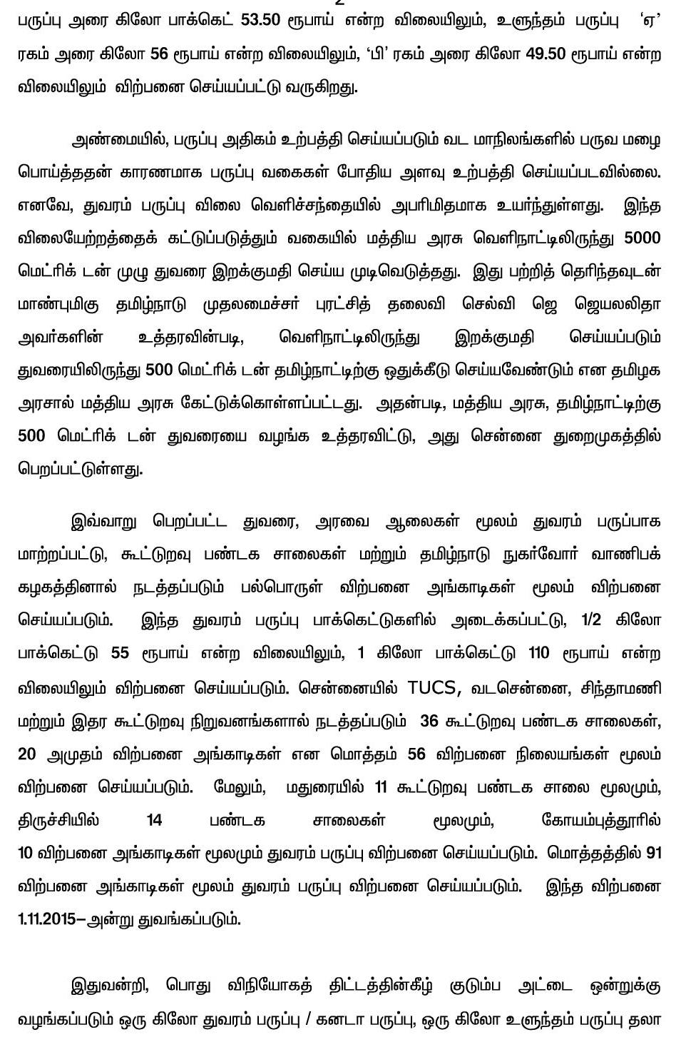 Home|News|வெளிச் சந்தையில் துவரம் பருப்பு விலை குறைய, தமிழக முதல்வர் ஜெ. ஜெயலலிதா நடவடிக்கை! –கே.பி.சுகுமார்.