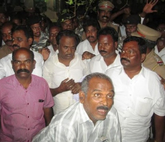 மேலும், வருவாய் துறையினர், பாலூர் காவல் நிலையத்தில் இது தொடர்பாக புகார் அளித்தனர். இதனால், காட்டாங்கொளத்தூர் தி.மு.க. ஒன்றிய செயலாளர் தண்டபாணி, ஆப்பூர் முன்னாள் ஊராட்சி தலைவர் சந்துரு (எ) ரவிச்சந்திரன், ஆப்பூரை சேர்ந்த சந்தானம் ஆகியோர் மீது குற்ற எண்: 287 / 2015, இந்திய தண்டனைச் சட்டம்(IPC) 430 -(நீர்பாசன கேடு செய்து அழிம்பு) 431 -(பொது சாலை, ஆறு, பாலம் கேடு அழிம்பு) 447- (குற்றமுறு அத்துமீறல்) 427-(ரூ.50-க்கும் மேற்பட்ட சேதம் அழிம்பு) ஆகிய பிரிவுகளின் கீழ் காவல் துறையினர் வழக்கு பதிவு செய்து, செங்கல்பட்டு குற்றவியல் நீதிமன்றம் (1)-ல் ஆஜர்படுத்தினர். கைது செய்யப்பட்ட தி.மு.க.வினர் மூவரையும் வருகின்ற நவம்பர் 6-ம் தேதி வரை காவலில் வைக்க நீதிபதி சிட்டிபாபு உத்தரவிட்டார். இதை தொடர்ந்து மூன்று பேரையும் போலீசார் சிறையில் அடைத்துள்ளனர்.