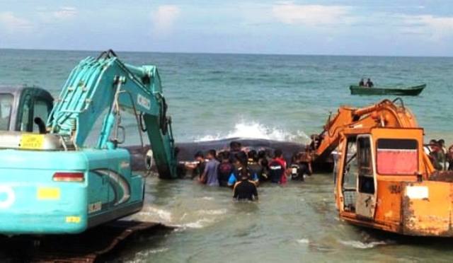 கரையொதுங்கிய திமிங்கலம், கனரக இயந்திரங்களின் உதவியுடன் கடலுக்குள் விடப்பட்டது!