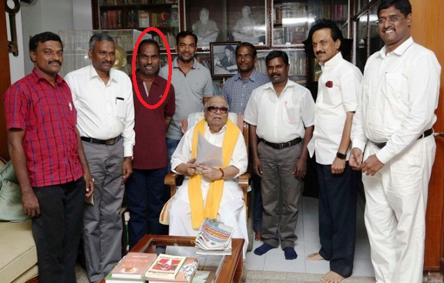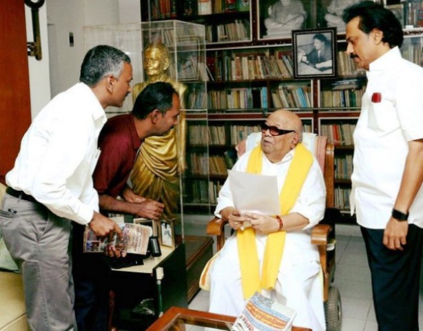 மதுவுக்கு எதிராக மக்களைத் திரட்டிப் போராடி வருவதாக மார்தட்டி கொள்ளும் மக்கள் கலை இலக்கியக் கழக நிர்வாகிகள். இன்று (26.11.2015) சென்னை கோபாலபுரம் சென்று, மு.க.ஸ்டாலின் உதவியுடன், திமுக தலைவர் மு.கருணாநிதியை நேரில் சந்தித்து தங்கள் நன்றி விசுவாசத்தை வெளிப்படுத்தி, அடுத்தக் கட்டப் போராட்டத்திற்கு தயாராகியுள்ளனர்.