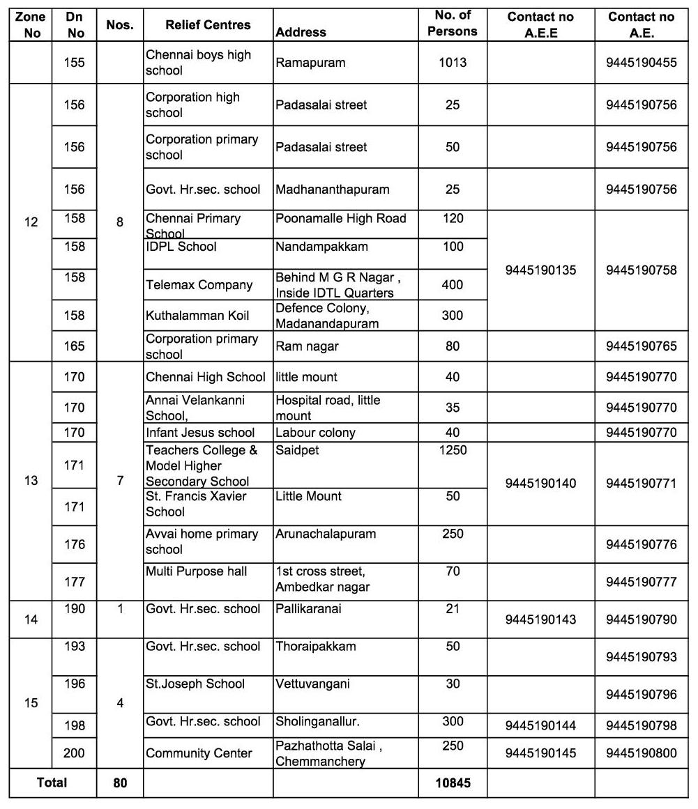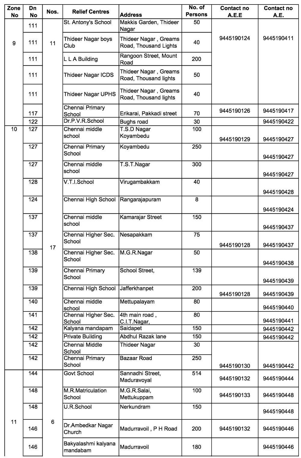 சென்னையில் உள்ள வெள்ள நிவாரண முகாம்களின் விபரங்கள்!