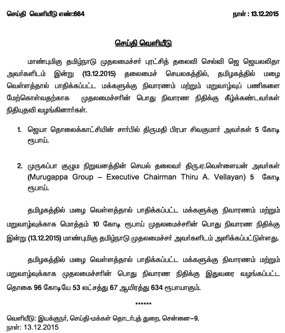 Home|News|தமிழ்நாடு முதலமைச்சர் ஜெ.ஜெயலலிதாவை நேரில் சந்தித்து நிதியுதவி வழங்கியவர்கள் விபரம்! -கே.பி.சுகுமார்.