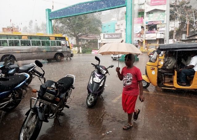 ஏற்காட்டில் இன்று (14.11.2015) காலையில் பனி, மாலை வரை கடும் வெயில், மாலை 5 மணிக்கு மழை, இப்படி மூன்று விதமான சீதோஷ்ண நிலைகள் நிலவியது.