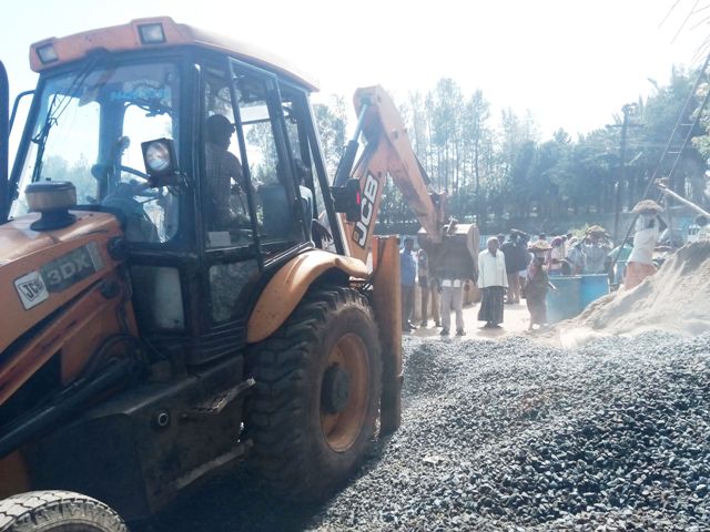 உதவி காவல் ஆய்வாளர் ஹரி கட்டிடம் கட்டுபவர்களிடம் சாலையை மறித்து பொதுமக்களுக்கு தொந்தரவு அளிக்ககூடாது என கூறி, சாலையில் இருந்த பொருட்களை அகற்ற கூறினார். உடனடியாக சாலையில் குவிக்கப்பட்டிருந்த பொருட்கள் அகற்றப்பட்டது.
