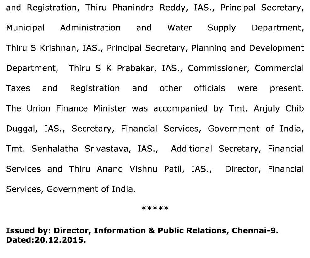 தமிழக அரசு இன்று வெளியிட்டுள்ள செய்திக்குறிப்பில் கூறப்பட்டு இருப்பதாவது:–