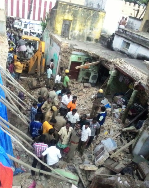 திருச்சி, ஸ்ரீரங்கம், மேற்கு உத்திர வீதியில் அஸ்திவார பணியின்போது, அருகில் உள்ள வீட்டின் சுவர் இடிந்து விழுந்ததில் 4 பேர் பலியாயினர், மேலும் 10 பேர் காயமடைந்தனர்.