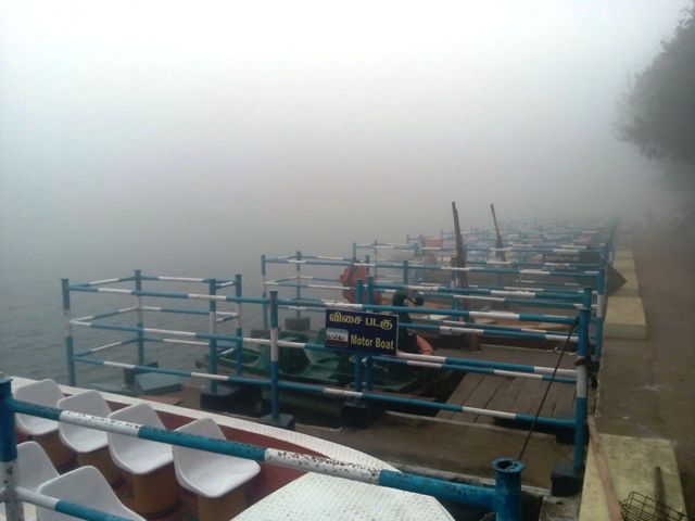 ஆனால், அருகில் இருப்பவர் கூட கண்களுக்கு தெரியாத அளவிற்கு, பனி மூட்டம் நிலவியதால், படகு சவாரி தாமதமாக (11மணிக்கு) துவங்கப்பட்டது.