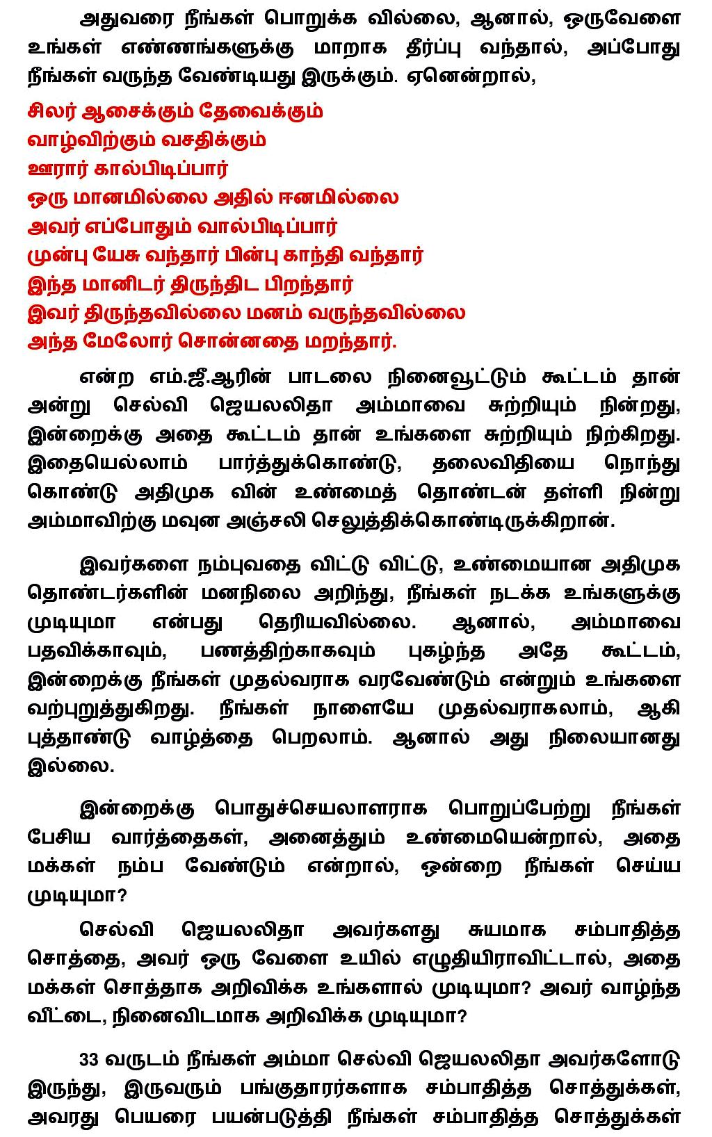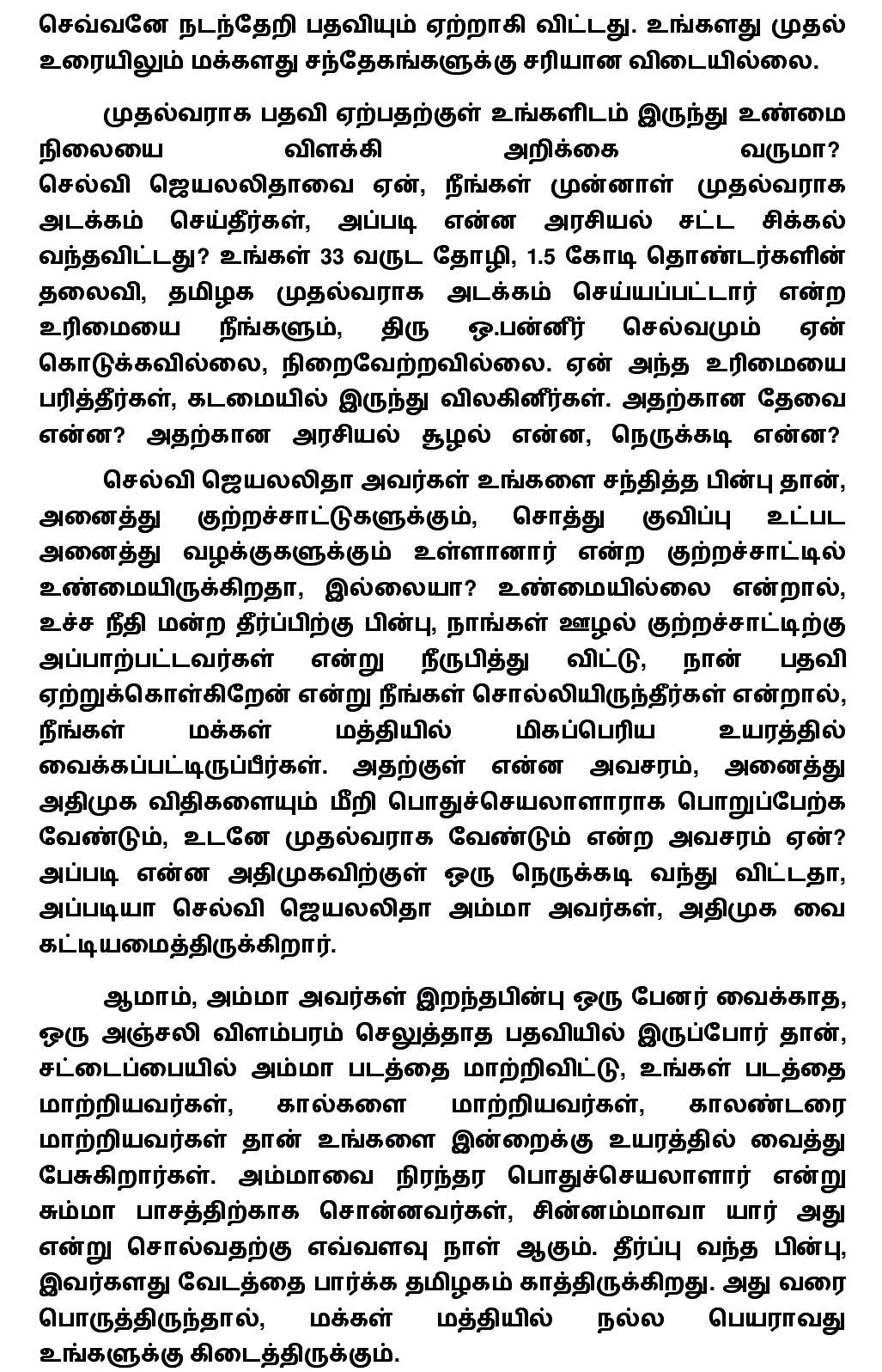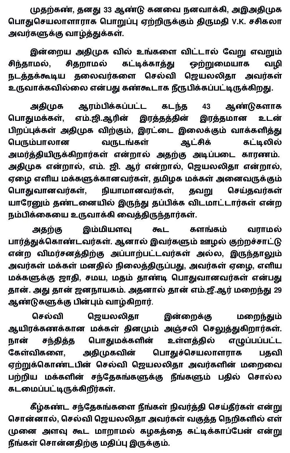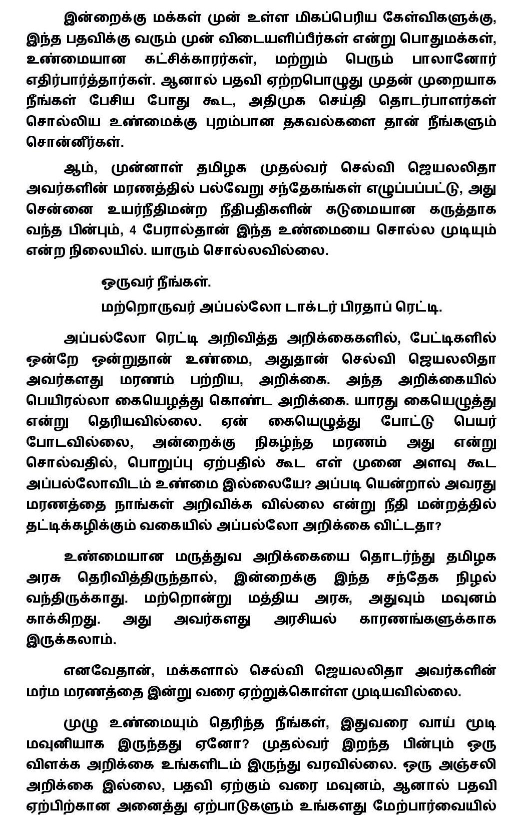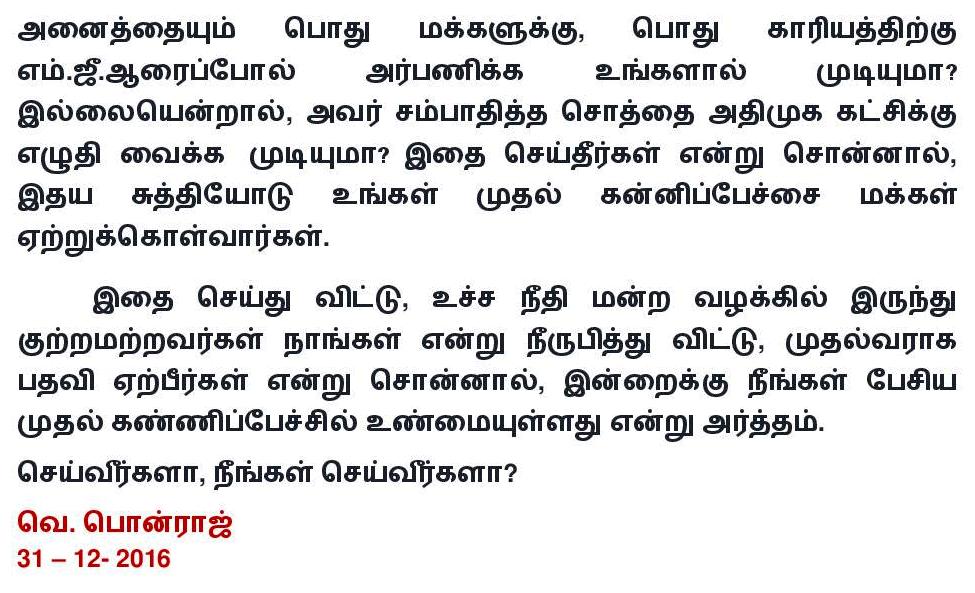 மக்களால் செல்வி ஜெயலலிதா மர்ம மரணத்தை இன்று வரை ஏற்றுக்கொள்ள முடியவில்லை! செல்வி ஜெயலலிதாவை ஏன், நீங்கள் முன்னாள் முதல்வராக அடக்கம் செய்தீர்கள்?-சசிகலாவிற்கு அப்துல்கலாம் முன்னாள் ஆலோசகர் வெ.பொன்ராஜ் கேள்வி.