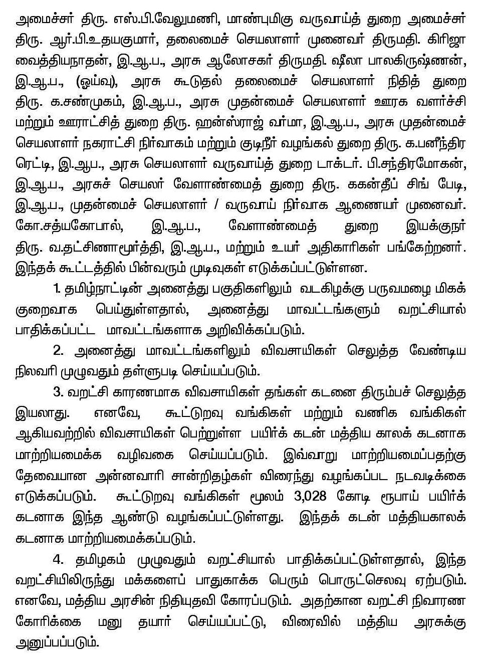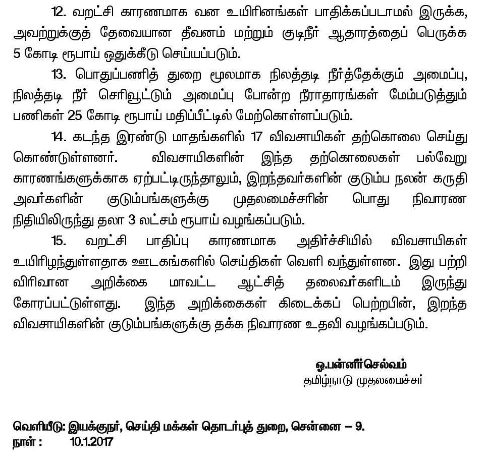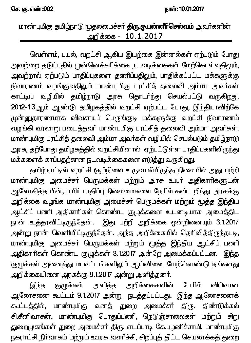 தமிழ்நாட்டின் அனைத்து மாவட்டங்களும் வறட்சியால் பாதிக்கப்பட்ட மாவட்டங்களாக அறிவிக்கப்படும்: முதல்வர் ஓ.பன்னீர்செல்வம் அறிக்கை.