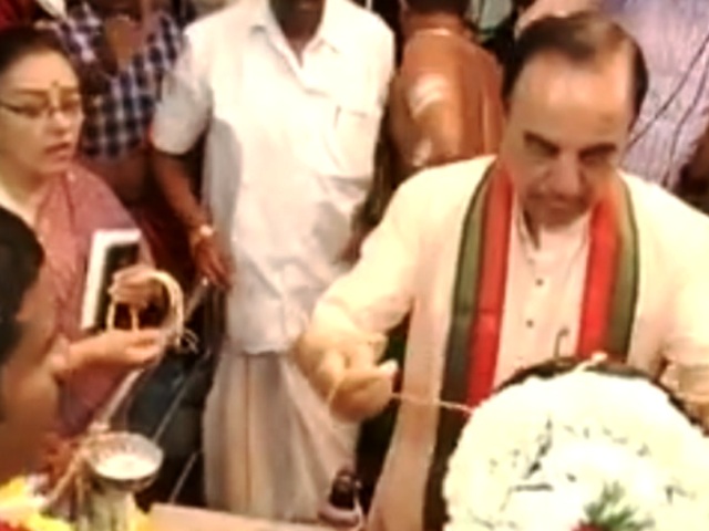 தாலியை கையில் வாங்கி, கண்ணை மூடி சாமி கும்பிடுவதைப் போல, பாவனை செய்த சுப்ரமணியன் சுவாமி, மணமகனிடம் தாலியை கொடுப்பதற்கு பதிலாக, தானே மணப்பெண்ணுக்கு தாலிகட்ட சுப்ரமணியன் சுவாமி முற்பட்டார். இதனால், அங்கிருந்தவர்கள் அனைவரும் அதிர்ச்சி அடைந்தனர்.