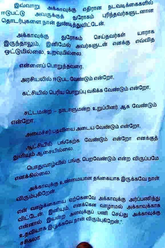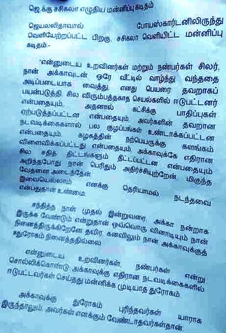 Home|News|ஜெயலலிதாவுக்கு, சசிகலா எழுதிய மன்னிப்பு கடிதத்தின் முழு விபரம்! -ஓ.பன்னீர் செல்வம் வெளியிட்டார். -கே.பி.சுகுமார்.