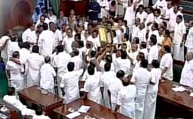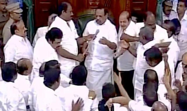 சட்டசபை செயலர் ஜமாலுதினின் இருக்கை கிழிக்கப்பட்டது. அவரது மேஜையில் இருந்த ஆவணங்களை திமுக எம்.எல்.ஏக்கள் கிழித்து வீசினர். சபாநாயகர் தனபால் இருக்கையில் அமர்ந்து திமுக உறுப்பினர்கள் அமளியில் ஈடுபட்டனர். இருக்கை கிழிப்பு, மைக் உடைப்பு சம்பவங்கள் அரங்கேறியதால் சபை இரண்டு முறை ஒத்தி வைக்கப்பட்டது.