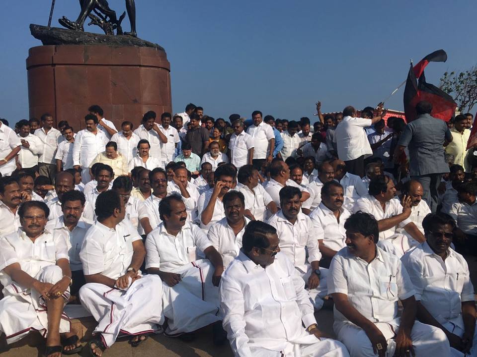 இந்நிலையில், தமிழக சட்டப்பேரவையில் திமுகவினர் தாக்கப்பட்டது குறித்து, ஆளுநர் வித்யாசாகர் ராவை சந்தித்து முறையிட்ட எதிர்க்கட்சி தலைவர் மு.க.ஸ்டாலின், சென்னை மெரினாவில் உள்ள காந்தி சிலை அருகே உண்ணாவிரதத்தில் ஈடுபட்டுள்ளார்.