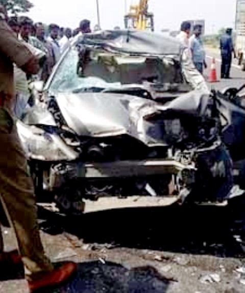 அச்சமயம் திருச்சியிலிருந்து – சென்னை நோக்கி அதிவேகமாக வந்த ஒரு கார், ஓட்டுனரின் கட்டுப்பாட்டை இழந்து முன்னால் சென்று கொண்டிருந்த லாரியின் பின்பகுதியில் பயங்கரமாக மோதியது.