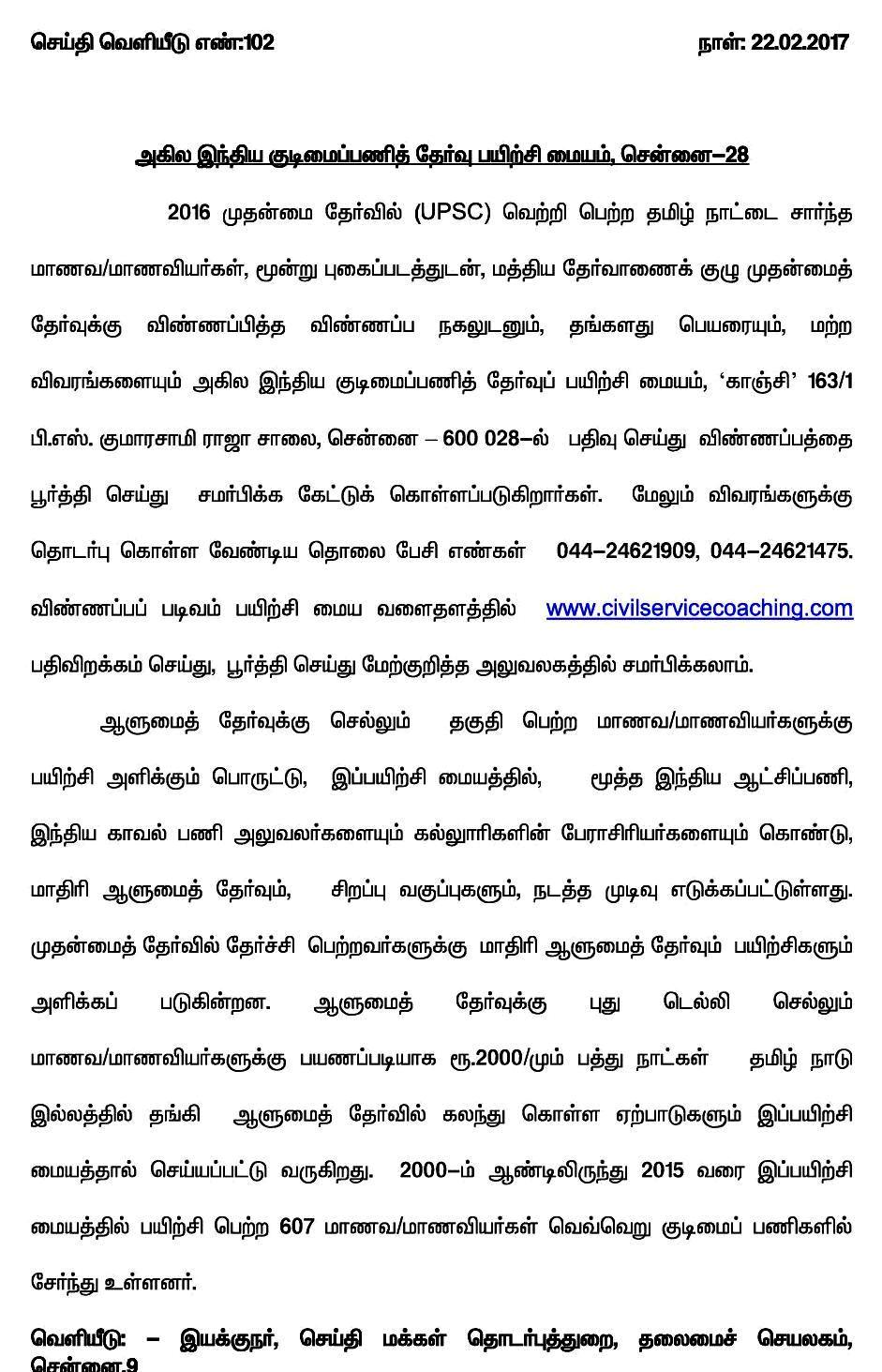 அகில இந்திய குடிமைப்பணித் தேர்வுப் பயிற்சி.