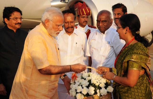 தில்லியில் இருந்து தனி விமானம் மூலம் பிரதமர் நரேந்திர மோதி கோவை விமான நிலையத்துக்கு வந்தார். அங்கிருந்து ஹெலிகாப்டர் மூலம் விழா நடைபெறும் இடத்தை அடைந்தார்.