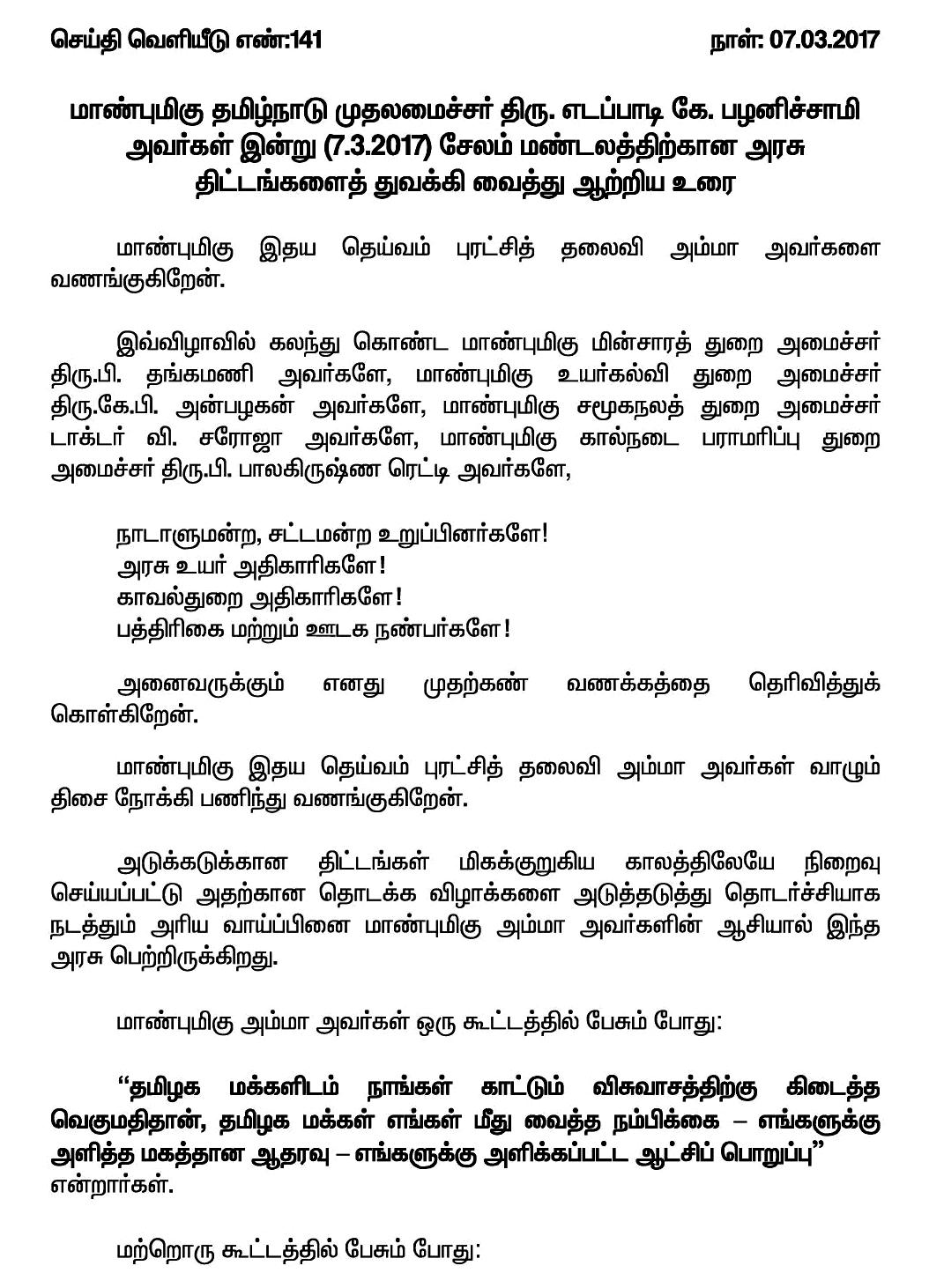 Home|News|தமிழ்நாடு முதலமைச்சர் எடப்பாடி கே.பழனிச்சாமி சேலம் மண்டலத்திற்கான அரசு திட்டங்களைத் துவக்கி வைத்து ஆற்றிய உரை!- முழு விபரம். -கே.பி.சுகுமார்.