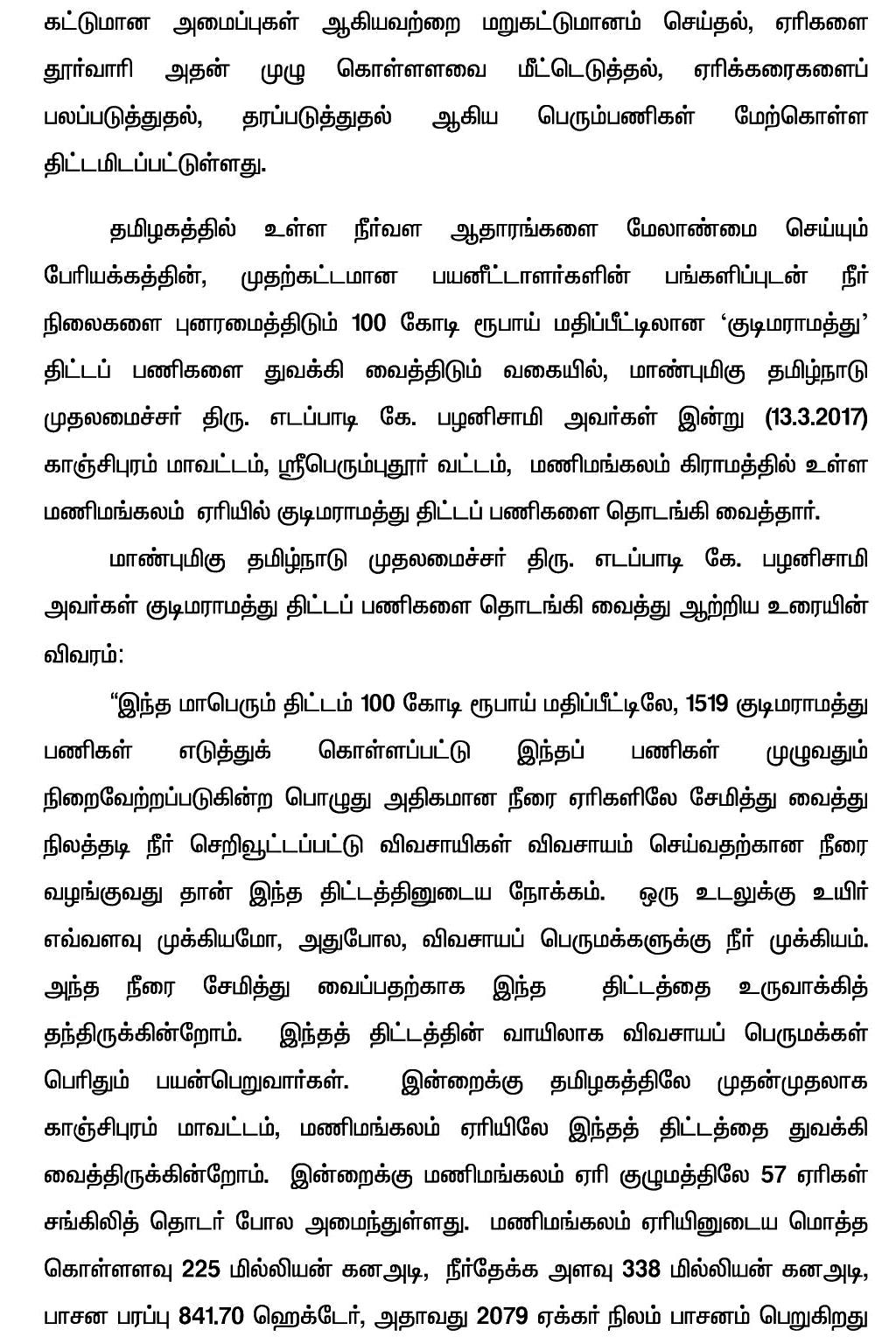 Home|News|குடிமராமத்துத் திட்டத்தை முதல்வர் எடப்பாடி கே. பழனிசாமி தொடங்கி வைத்தார். -ஆர்.அருண்கேசவன்.