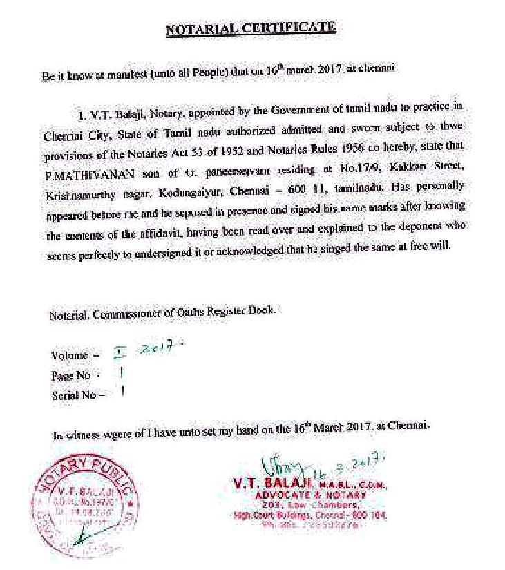 சென்னை ஆர்.கே.நகர் தொகுதியில் தேமுதிக சார்பில் மதிவாணன் போட்டி!- வேட்புமனுவின் உண்மை நகல்.