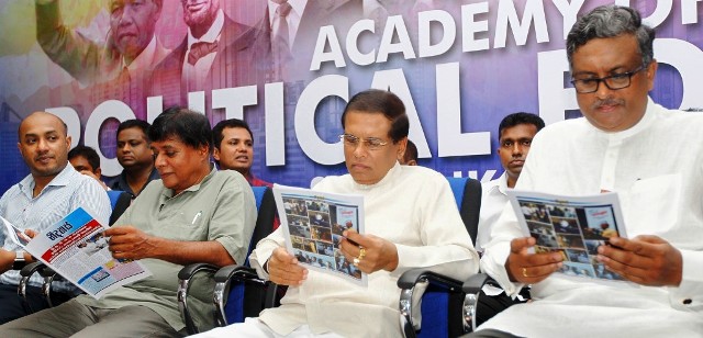 பல வருட காலமாகப் பேசப்பட்டு வந்த கட்சி வரலாற்றில் நிறைவேற்றப்படாதிருந்த இந்த அரசியல் பயிற்சி மையத்தை தனது தலைமைத்துவத்தின் கீழ் ஆரம்பிக்கக் கிடைத்திருப்பது எனக்கு மகிழ்சியாக உள்ளது. இவ்வாறு இலங்கை ஜனாதிபதி மைத்ரிபால சிறிசேன உரையாற்றினார்.