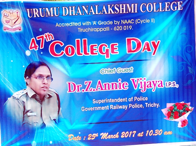 திருச்சி பாப்பாக்குறிச்சி காட்டூரில் அமைந்துள்ள உருமு தனலெட்சுமி கல்லூரியின் 47 – வது ஆண்டு கல்லூரி தின விழா இன்று காலை நடைப்பெற்றது.
