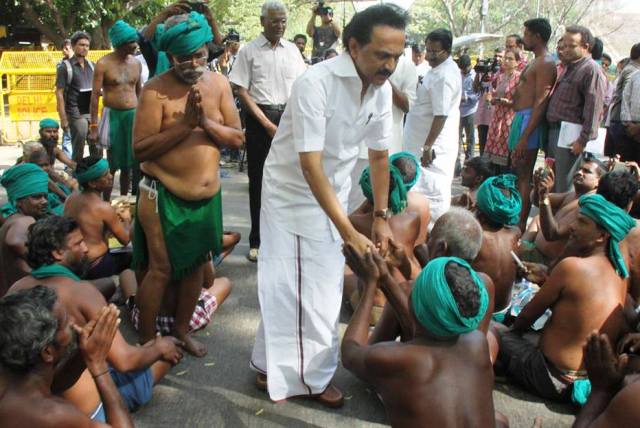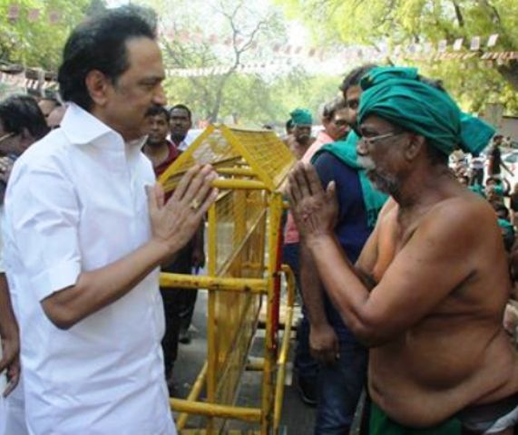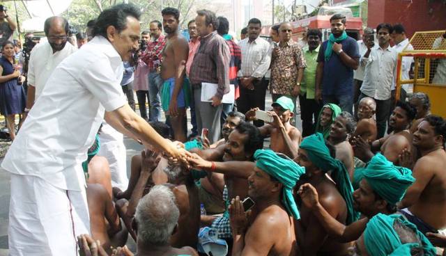 டெல்லியில் தொடர் போராட்டத்தில் ஈடுபட்டு வரும் தமிழக விவசாயிகளை, தமிழக எதிர்க்கட்சித் தலைவர் மு..ஸ்டாலின் இன்று நேரில் சந்தித்து பேசினார்.