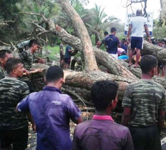 இலங்கை, வடக்கு மாகாணம், வவுனியாவில் வீசிய சூறாவளி காற்றினால்  பல இடங்களில் மரங்கள் அடியோடு சாய்தது. இதனால் போக்குவரத்துப் பாதிக்கப்பட்டது. பொதுமக்கள் சிரமத்திற்கு உள்ளானார்கள். மரத்தை அப்புறப்படுத்தும் பணியில் இராணுவத்தினர் மற்றும் போலிசாருடன்  இணைந்து உள்ளுர் இளைஞர்களும் ஈடுபட்டனர்.