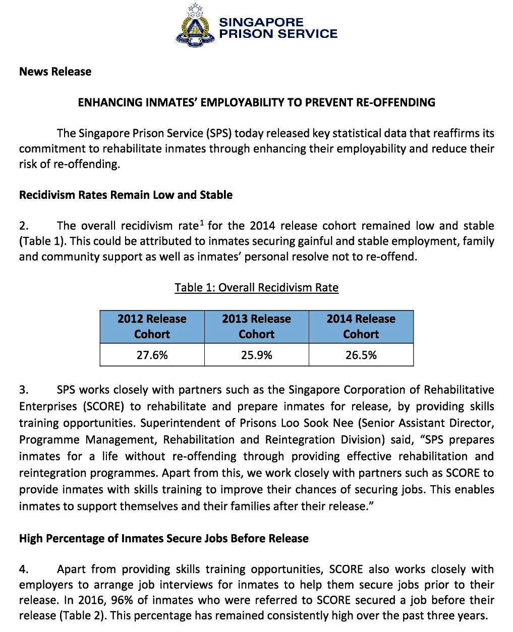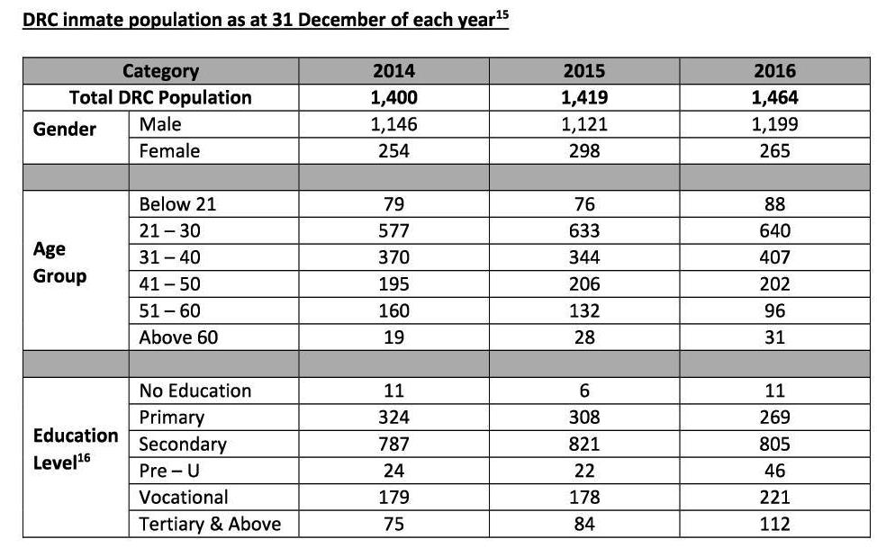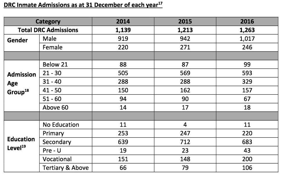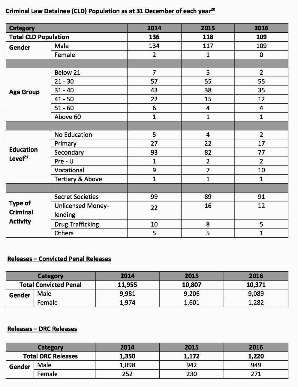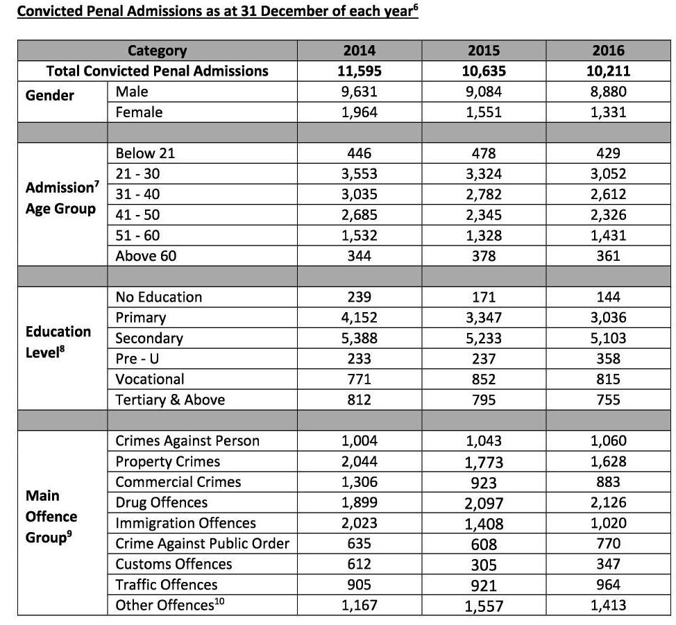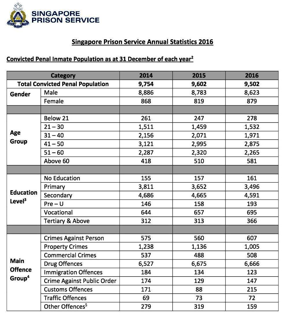 சிங்கப்பூர் சிறைச்சாலை வருடாந்திர புள்ளி விபரம்!