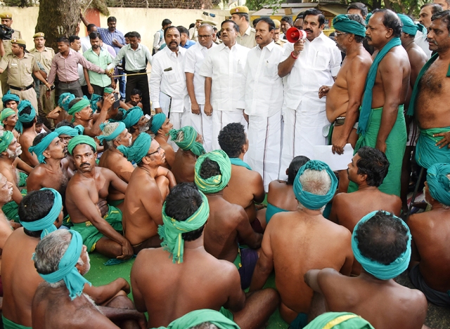 அதை தொடர்ந்து பேசிய முதல்வர் பழனிசாமி, நதிகள் இணைப்பிற்கு மத்திய அரசை மாநில அரசு வலியுறுத்தும் என்றும், வங்கி கடன் ரத்து தொடர்பாக பிரதமர் நரேந்திர மோதியை சந்தித்து அதற்கான நடவடிக்கை எடுக்க வழி செய்வேன் என்றும், வறட்சியில் பாதிக்கப்பட்டவர்களுக்கு விரைவில் நிவாரணம் கிடைக்க வழி செய்யப்படும் என உறுதியளித்தார்.