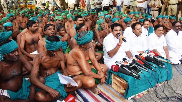 டெல்லியில் பிரதமர் தலைமையில் நடக்க உள்ள நிதி ஆயோக் கூட்டத்தில் பங்கேற்க டெல்லி சென்ற முதலமைச்சர் எடப்பாடி கே.பழனிச்சாமி  மற்றும் மக்களவை துணை சபாநாயகர் தம்பிதுரை ஆகியோர் 41 நாளாக ஜந்தர் மந்தரில் போராடி வரும் தமிழக விவசாயிகளை நேரில் சென்று சந்தித்தனர்.   விவசாயிகளுடன் கலந்துரையாடினர்.