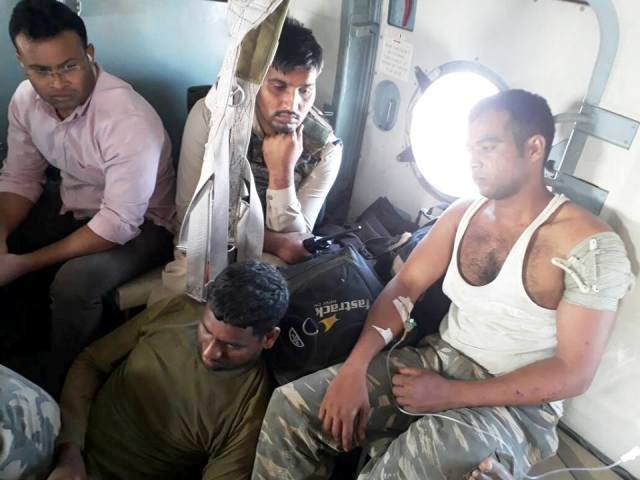 இந்த கொடூர தாக்குதலுக்கு பிறகு மாவோயிஸ்ட் தீவிரவாதிகள் வனப்பகுதிக்குள் தப்பி ஓடி விட்டனர். இது பற்றி தகவல் அறிந்த அதிகாரிகள் அங்கு விரைந்து வந்தனர். காயம் அடைந்த சி.ஆர்.பி.எப். படையினரை ஹெலிகாப்டரில் ஏற்றி அருகில் உள்ள மருத்துவமனைகளில் சிகிச்சைக்காக சேர்த்தனர்.