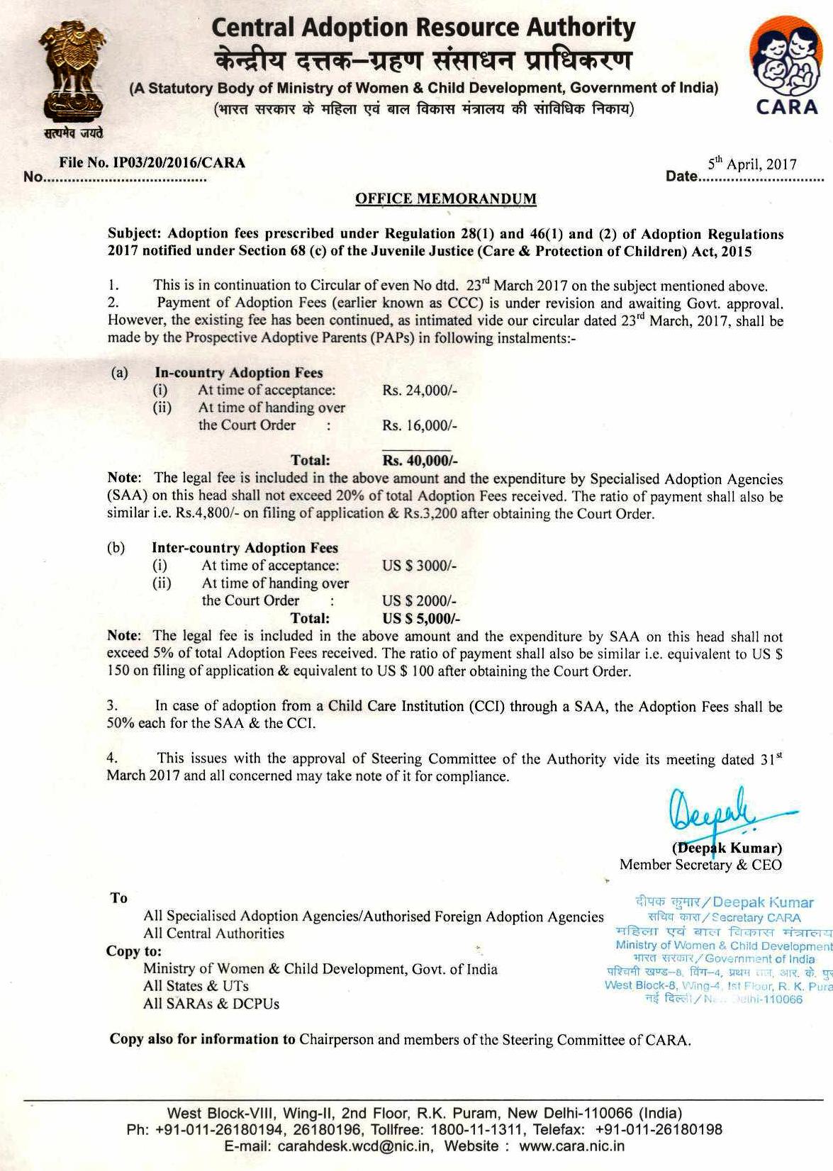 மத்திய தத்தெடுப்பு வள அதிகார சபை மூலம் குழந்தை தத்தெடுப்புக்கான கட்டண விபரம், நமது வாசகர்களின் பார்வைக்காக இங்கு பதிவு செய்துள்ளோம்.