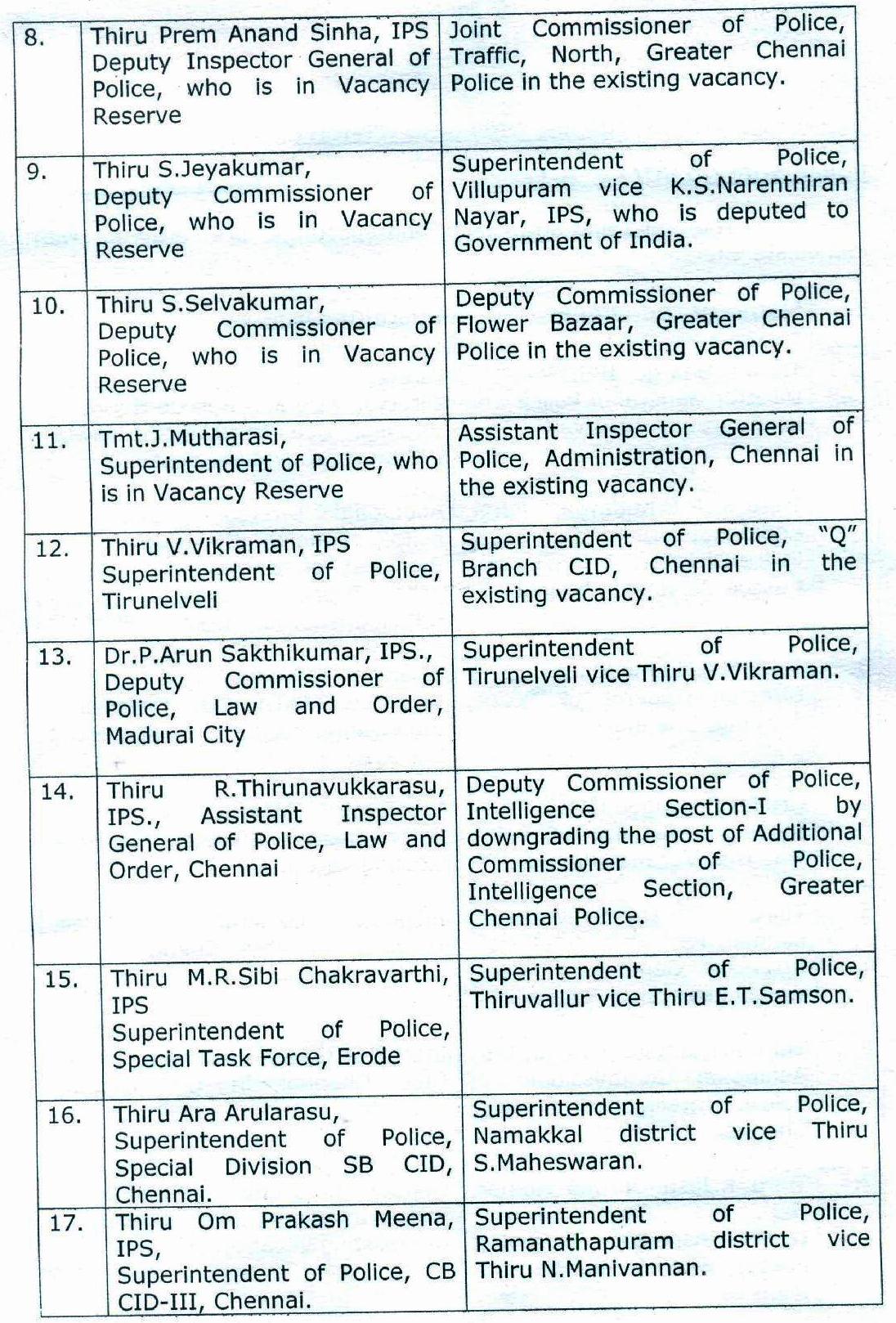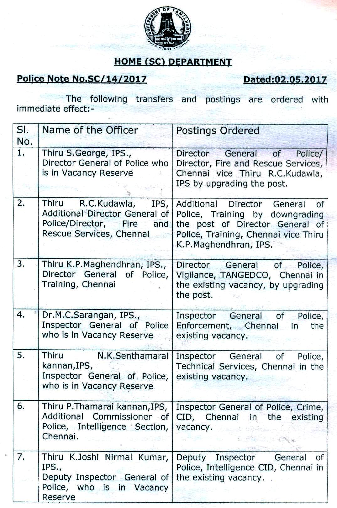 தமிழகத்தில் ஐ.பி.எஸ் அதிகாரிகள் அதிரடி மாற்றம்!- உத்தரவின் உண்மை நகல்.