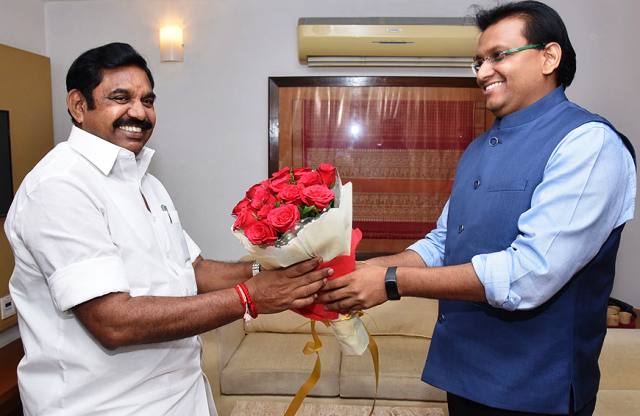 Home|News|தமிழக முதலமைச்சர் கே.பழனிச்சாமியை, சித்தூர் மாவட்ட ஆட்சித்தலைவர் மலர் கொத்து கொடுத்து வரவேற்றார். திருப்பதி சென்ற தமிழக முதலமைச்சர் கே.பழனிச்சாமியை, ஆந்திர மாநிலம், சித்தூர் மாவட்ட ஆட்சித்தலைவர் பி.எஸ். பிரதியும்னா மலர் கொத்து கொடுத்து வரவேற்றார். -ஜி.புவனா.