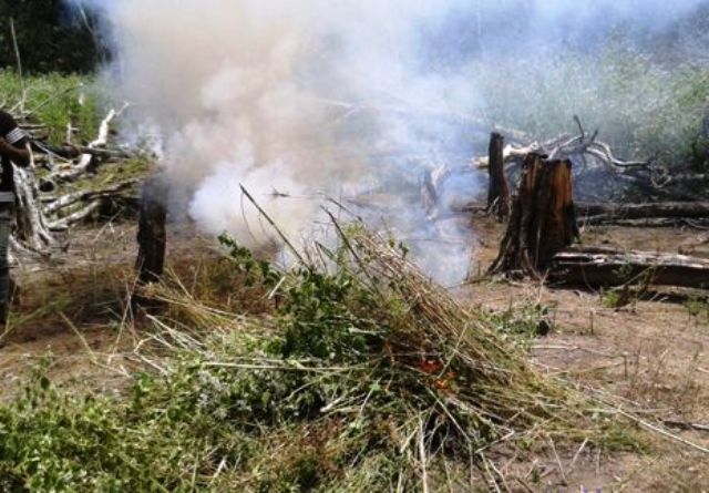 நன்றாக வளர்ந்த சுமார் 5000-த்திற்கு மேற்பட்ட கஞ்சா செடிகளை கடற்படை வீரர்களும், அதிரடிப்படை போலிசாரும் தீ வைத்து எரித்து அழித்தனர்.